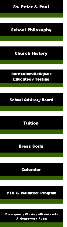 When weather conditions cause schools in Fayette County to be closed, to close early, or to have a delayed opening, Ss. Peter & Paul School will also follow that directive. If a decision is made to remain open when Fayette County is closed, it will be announced on local radio WTNJ, WJLS & WCIR and local television station WOAY.