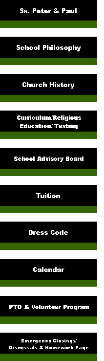 Ss. Peter & Paul School believes that an appropriate dress code is important in educating its students in the necessity of good grooming and acceptable appearance. It is our responsibility, both home and school, to teach values, set standards, and reduce pressures, which the latest fashions and styles put on our students. Parents will be asked to bring clothes to the office if a student wears apparel not in accordance with the dress code. The principal or representative will get in touch with the parent.